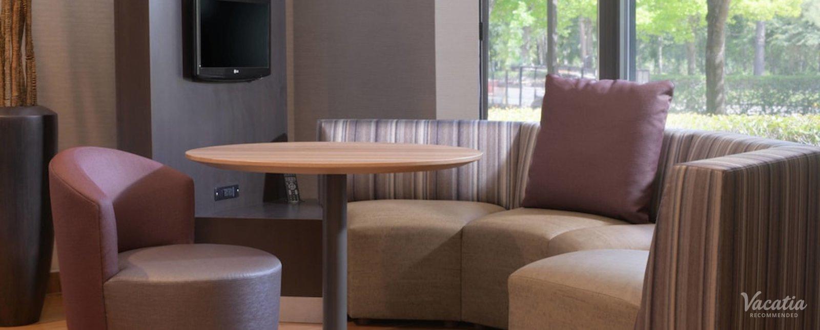Make yourself at home in one of the 126 air-conditioned rooms featuring refrigerators and microwaves. Wired and wireless Internet access is complimentary, and flat-screen televisions with cable programming provide entertainment. Partially open bathrooms with shower/tub combinations feature complimentary toiletries and hair dryers. Conveniences include phones, as well as desks and complimentary weekday newspapers.