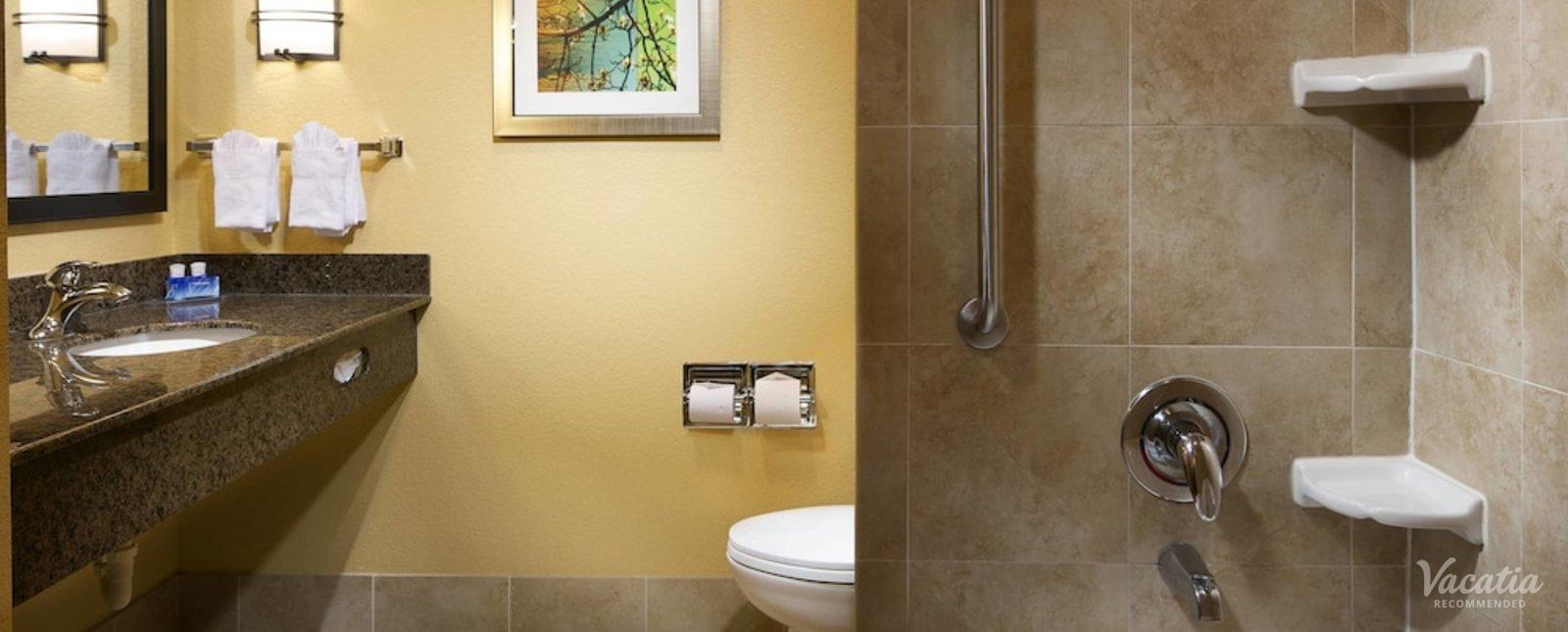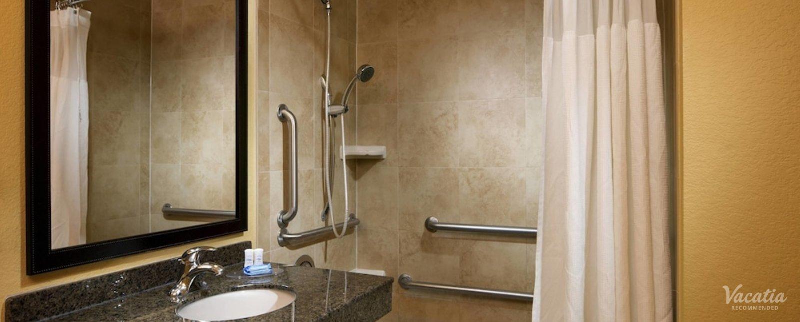 Make yourself at home in one of the 131 air-conditioned rooms featuring refrigerators and microwaves. Wired and wireless Internet access is complimentary, while 32-inch LCD televisions with cable programming provide entertainment. Bathrooms have shower/tub combinations and hair dryers. Conveniences include phones, as well as safes and desks.