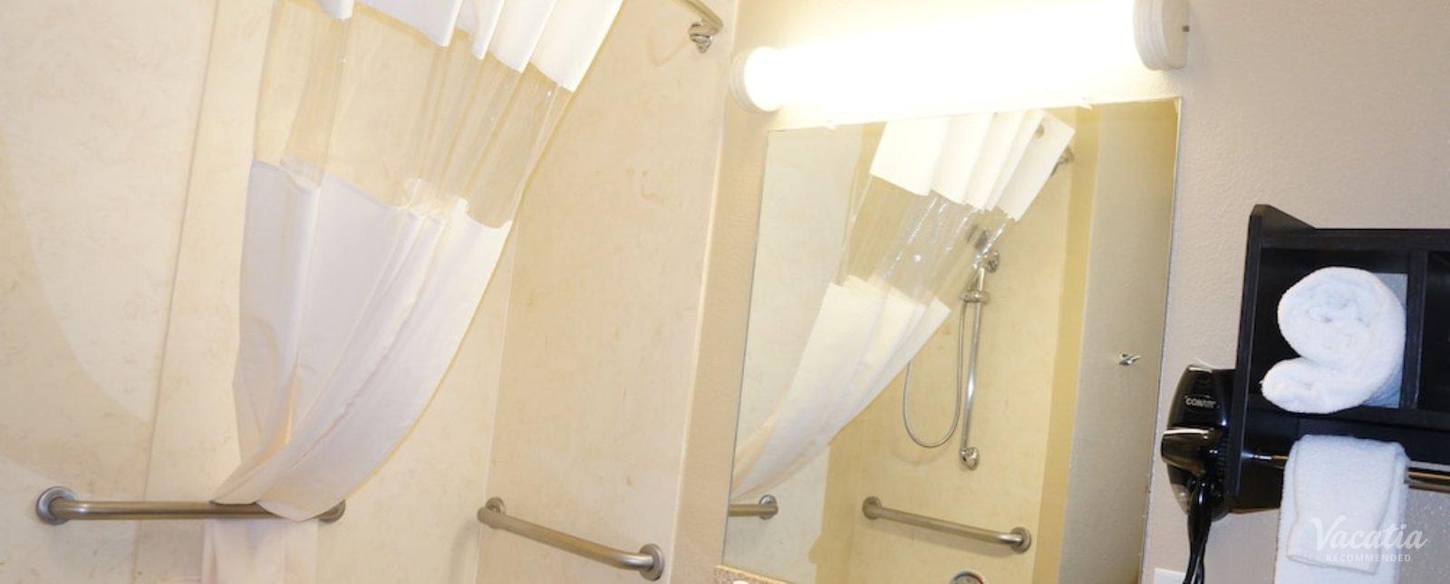 Make yourself at home in one of the 73 air-conditioned rooms featuring refrigerators and microwaves. 27-inch flat-screen televisions with digital programming provide entertainment, while complimentary wireless Internet access keeps you connected. Private bathrooms with shower/tub combinations feature complimentary toiletries and hair dryers. Conveniences include desks and coffee/tea makers, as well as phones with free local calls.